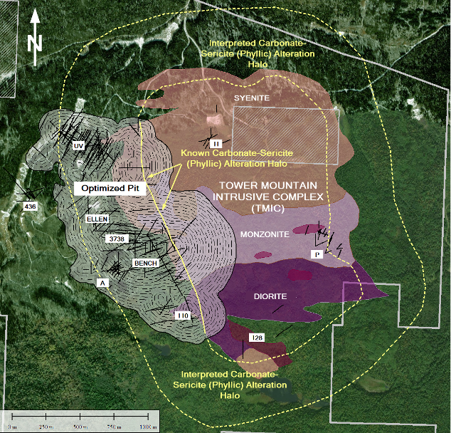 The 2,100-hectare property surrounds the Tower Mountain Intrusive Complex (“TMIC”), the largest, exposed, calc-alkalic intrusive complex in the eastern Shebandowan Greenstone Belt. The Property is comprised entirely of Archean aged volcanic, volcanoclastic and intrusive rocks of the Shebandowan Assemblage.